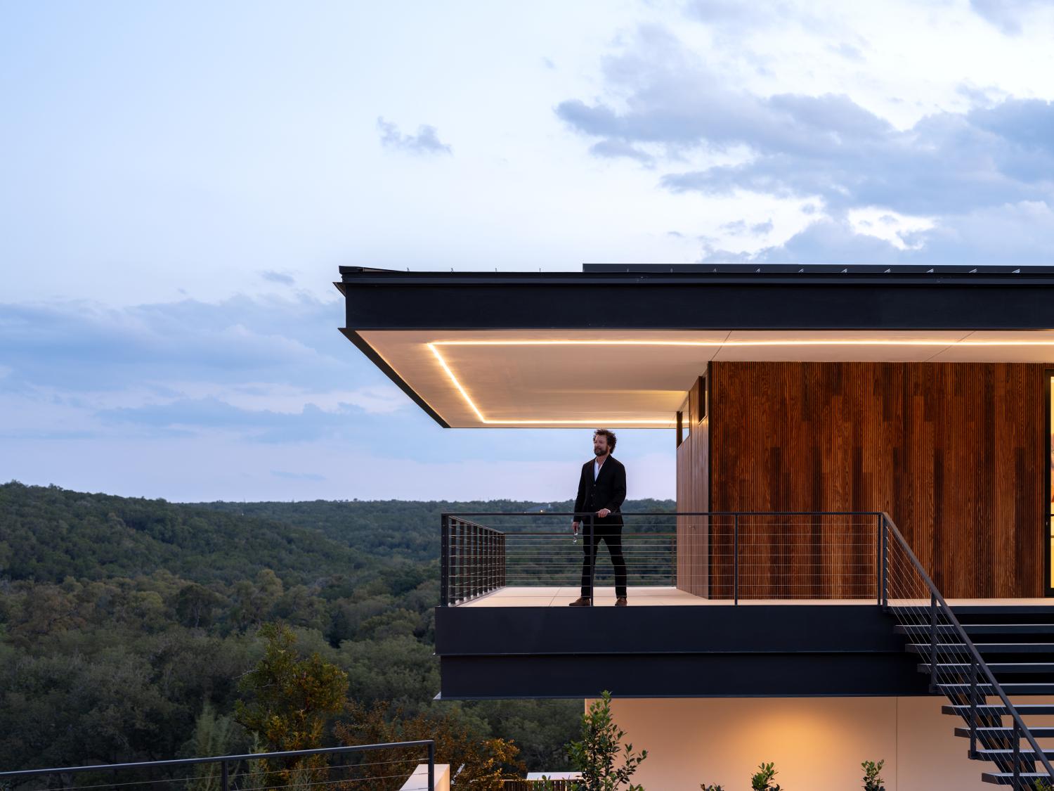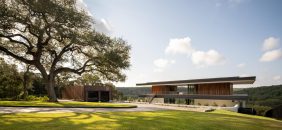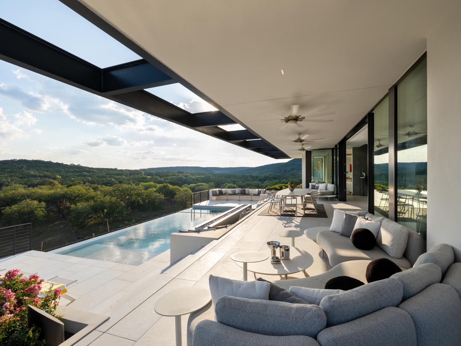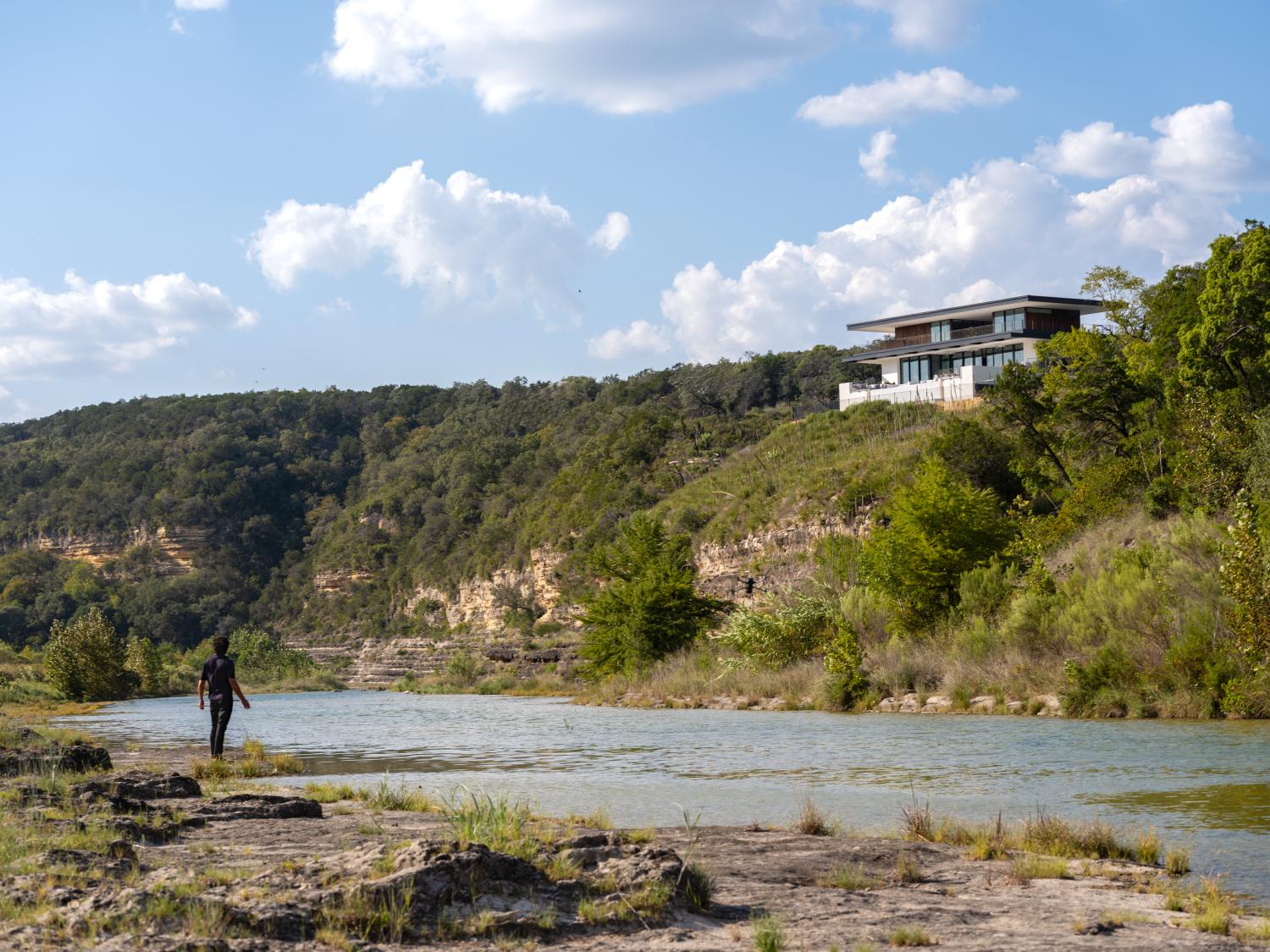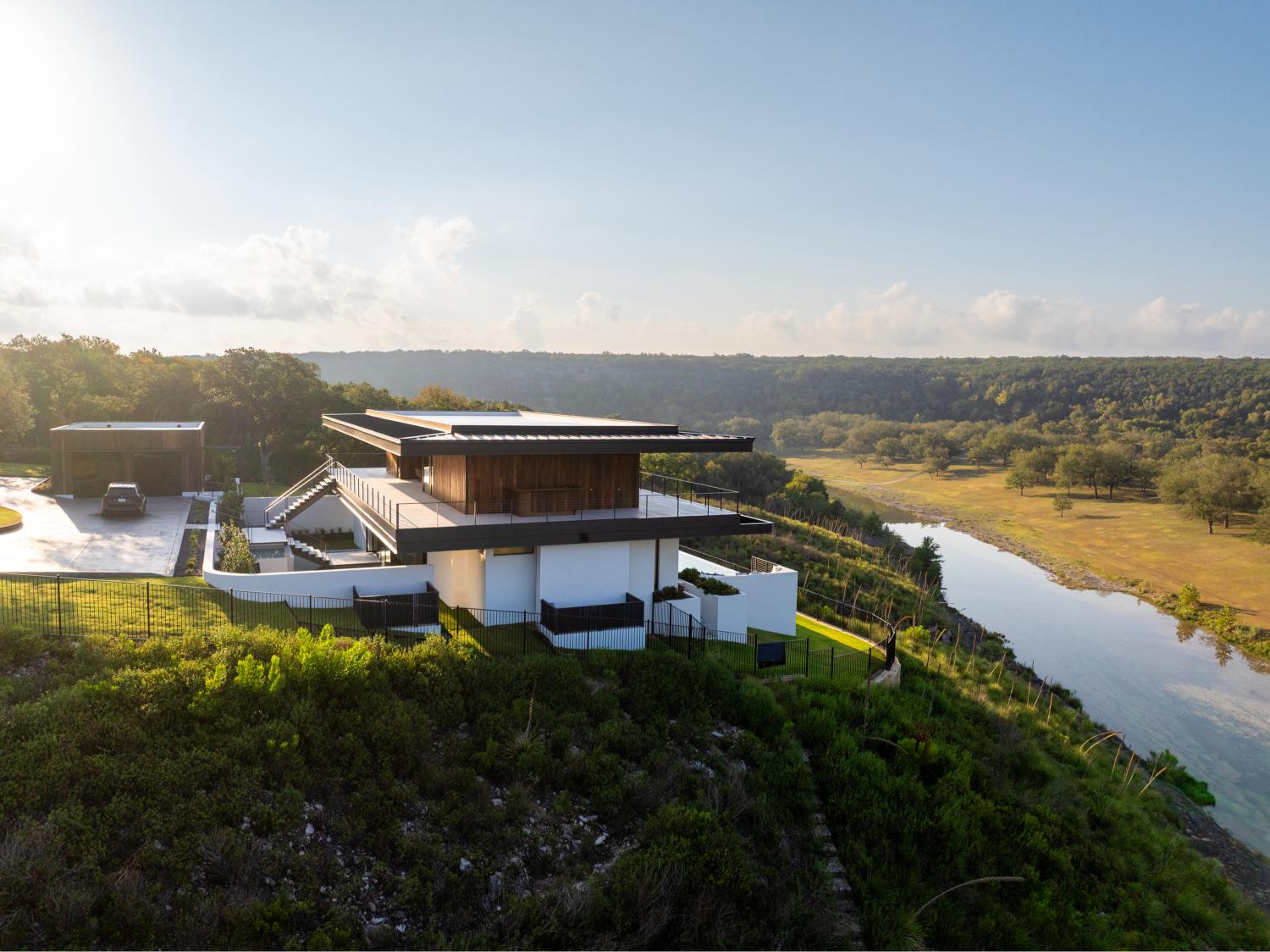 Located on a 200 acre ranch on a bluff high above the Blanco river just outside of Wimberley Texas is our Texas-interpretation of a Los Angeles mid-century modern home.