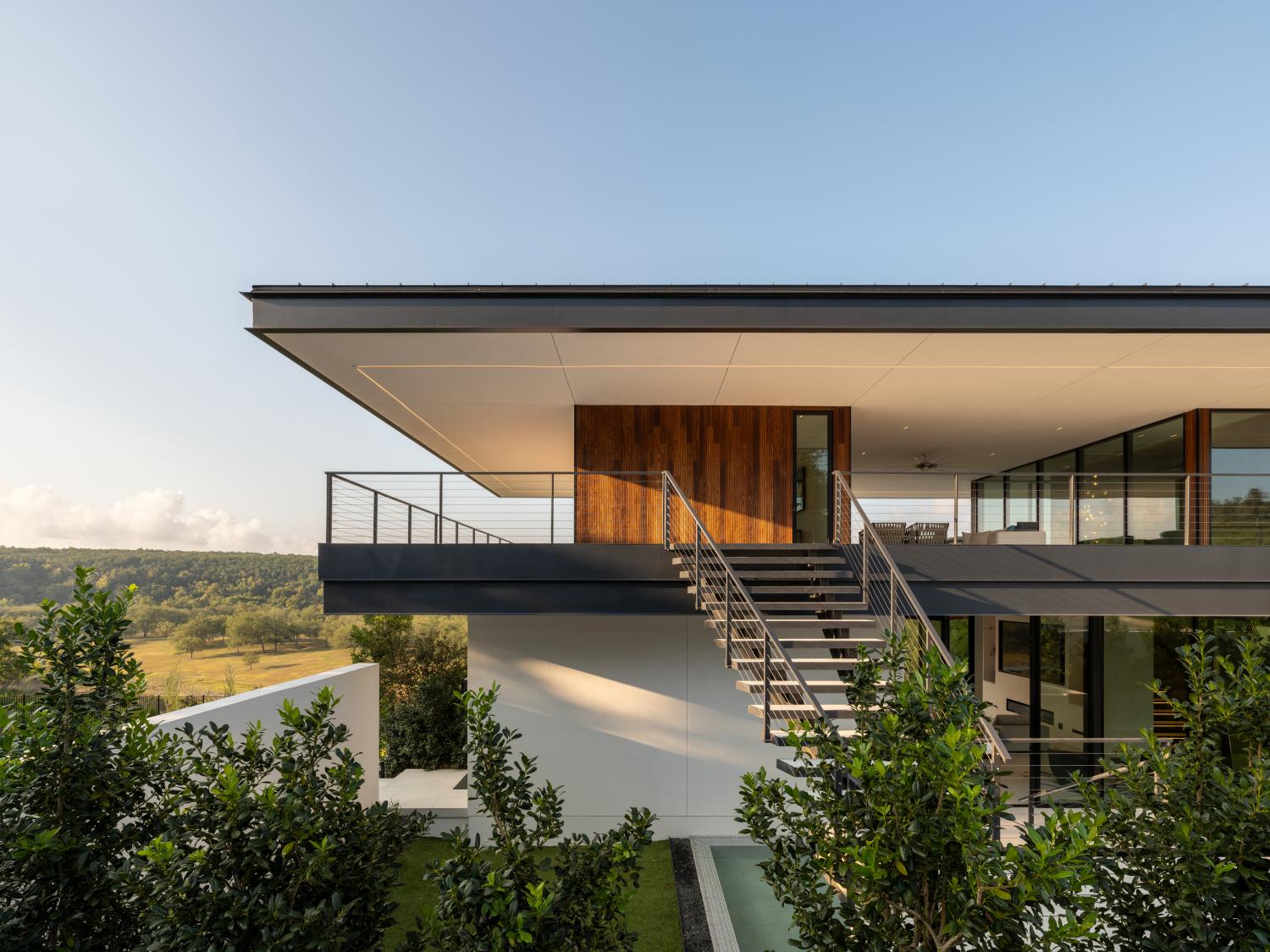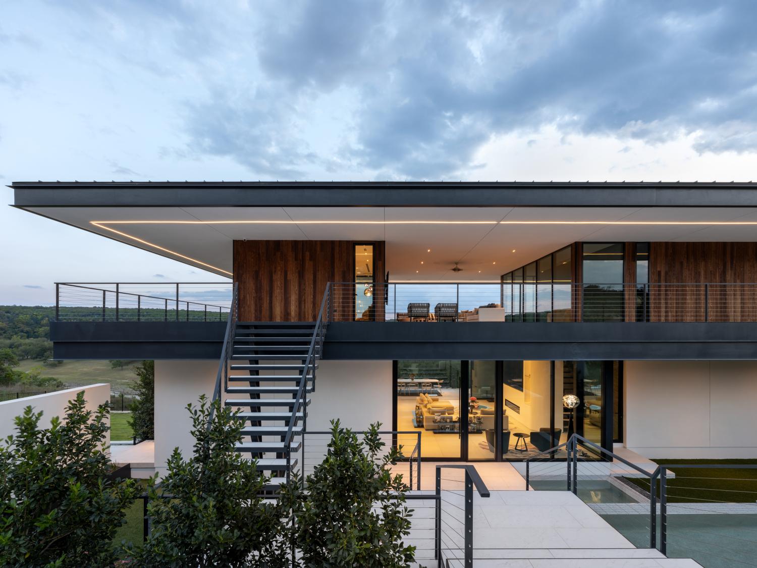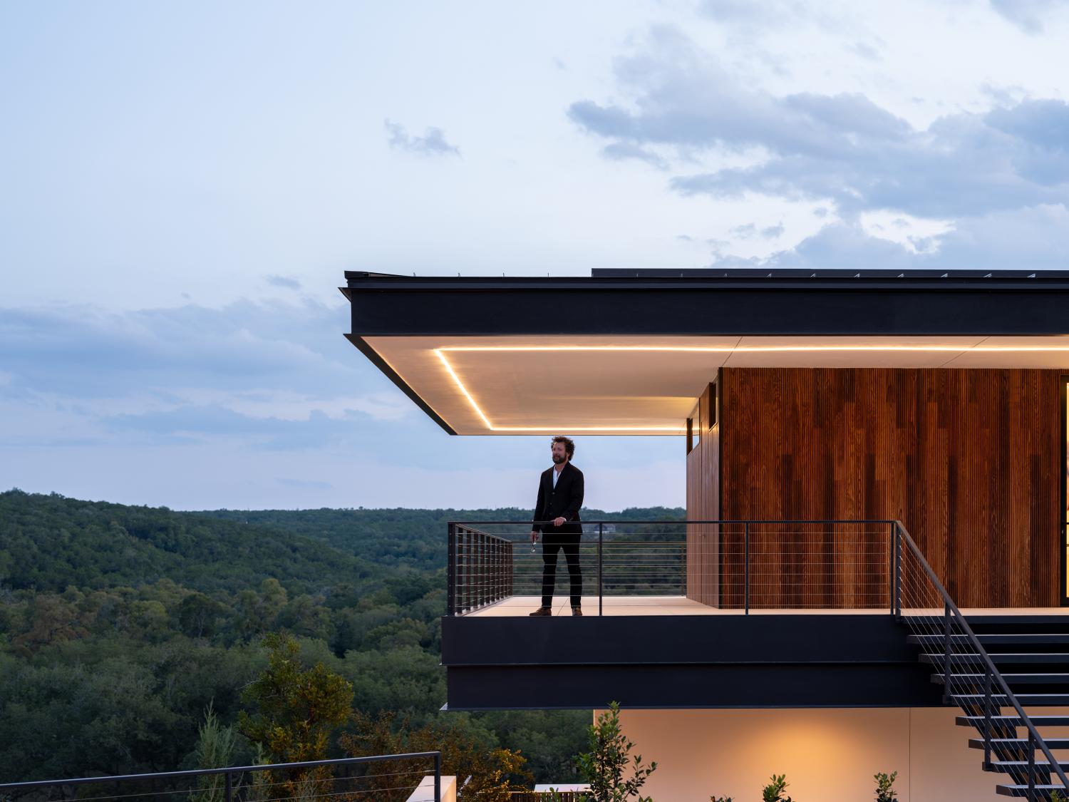 Located on a 200 acre ranch on a bluff high above the Blanco river just outside of Wimberley Texas is our Texas-interpretation of a Los Angeles mid-century modern home.