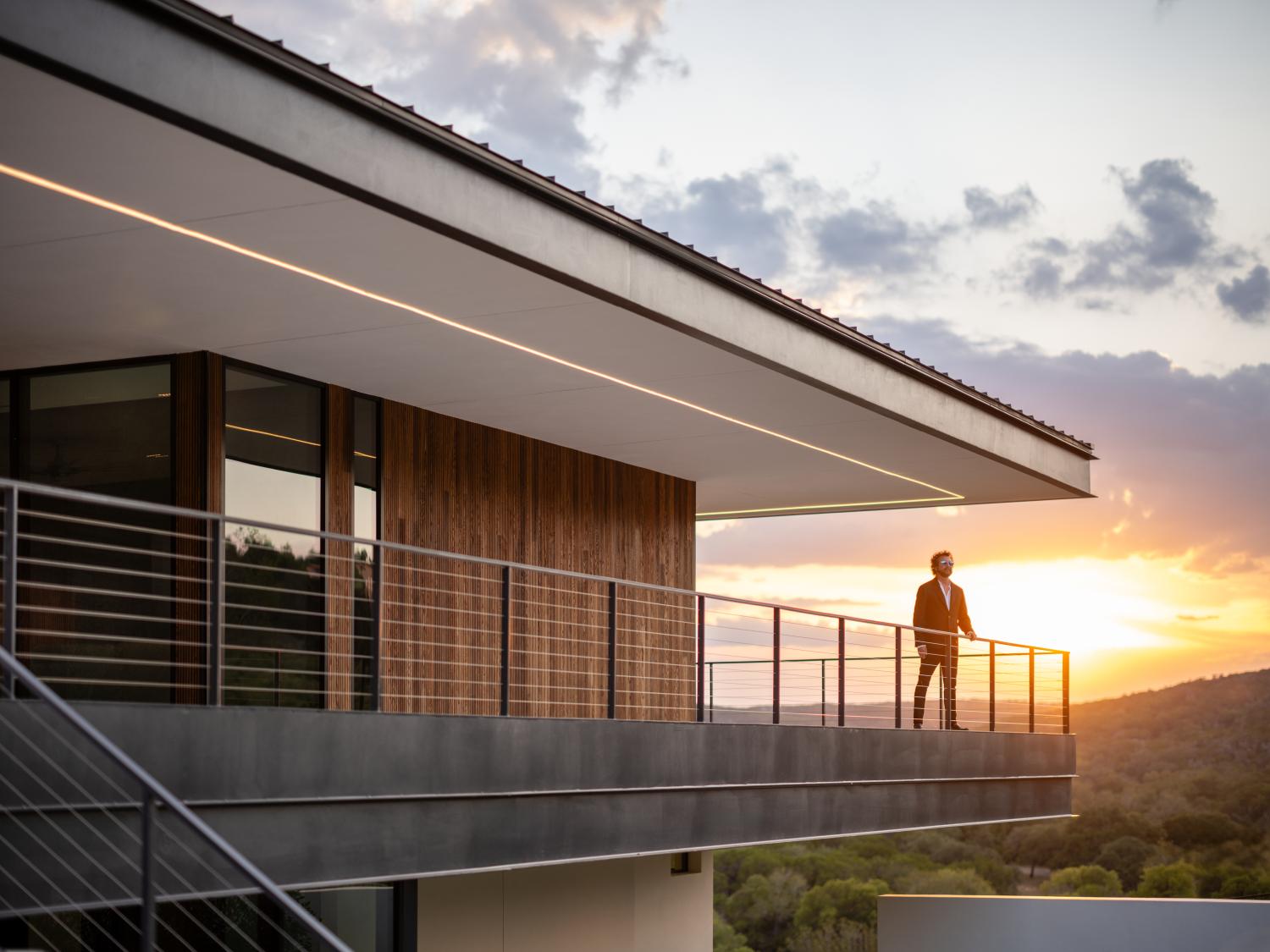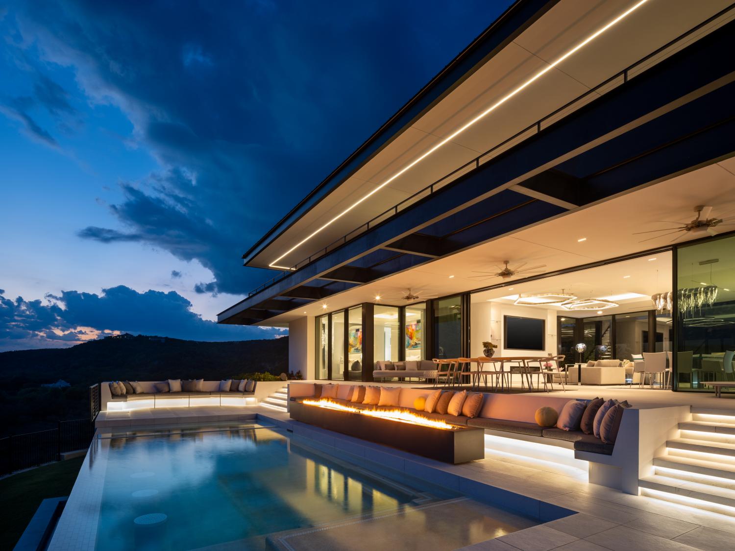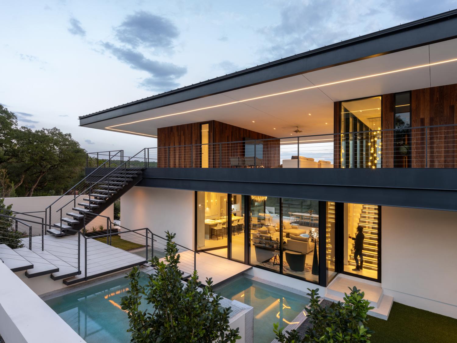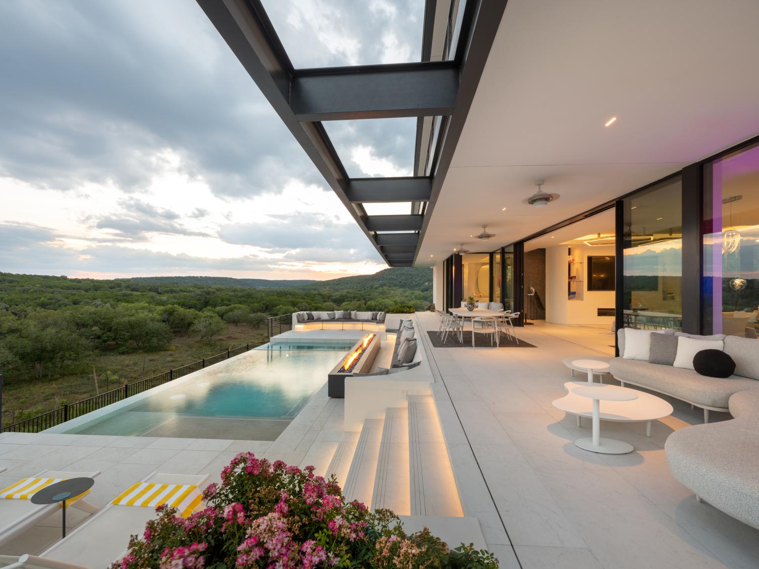 Located on a 200 acre ranch on a bluff high above the Blanco river just outside of Wimberley Texas is our Texas-interpretation of a Los Angeles mid-century modern home.