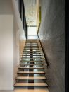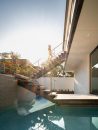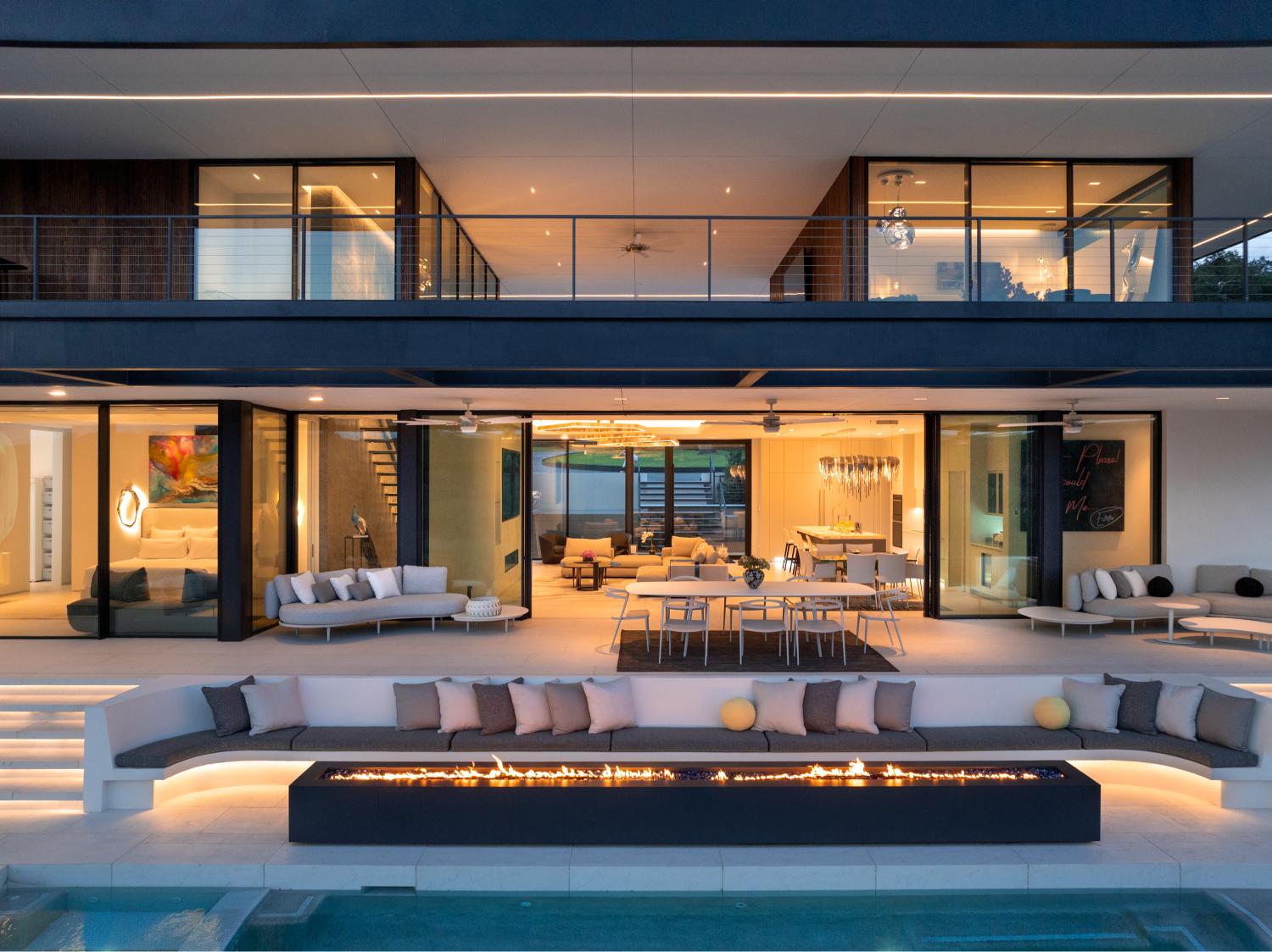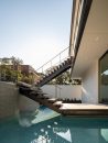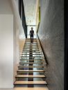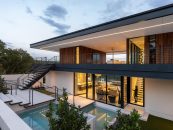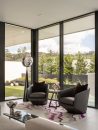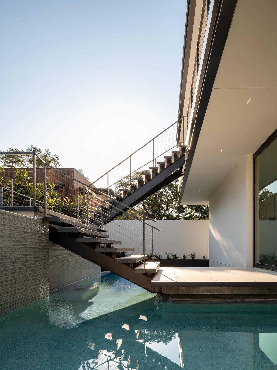 The home is oriented in such as way as to visually-connect the 2 levels of living spaces and pool with views to the river 80 feet below.